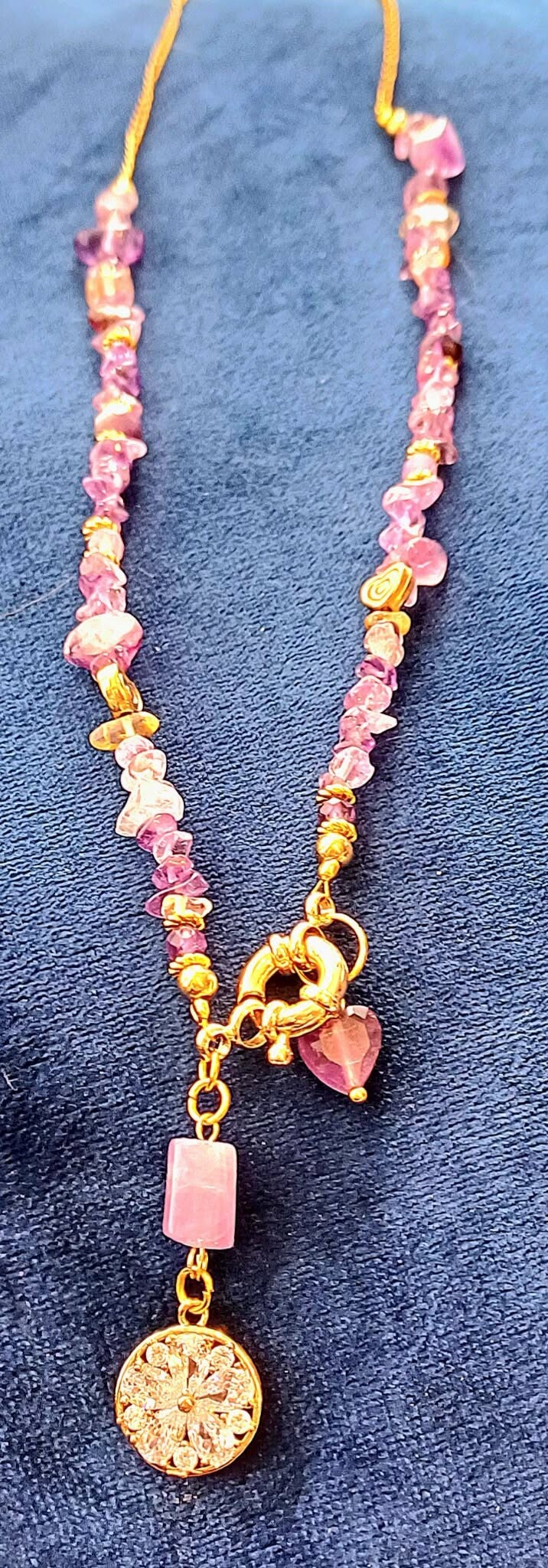 Do tego połączyłam słodkie ametystowe serduszko i śliczną zawieszkę - pasuje do kolczyków i bransoletki z ametystowym serduszkiem !