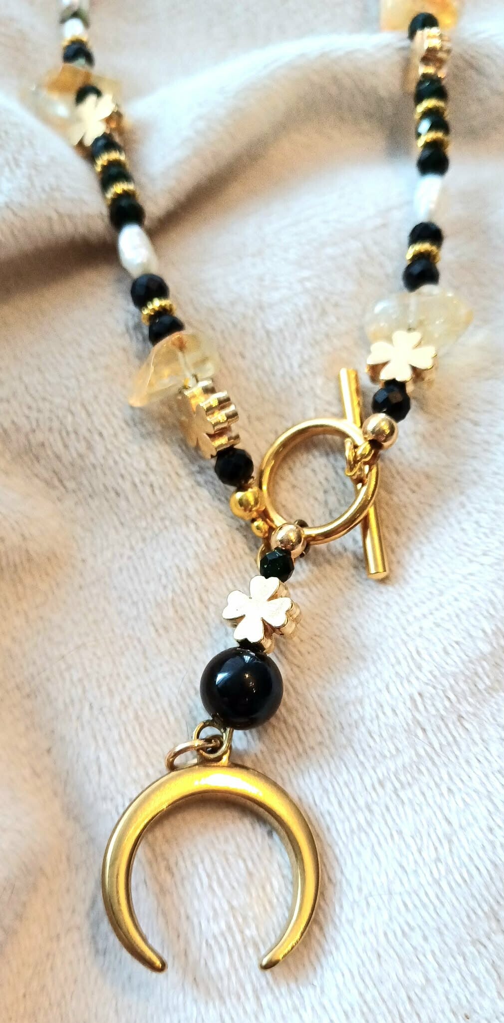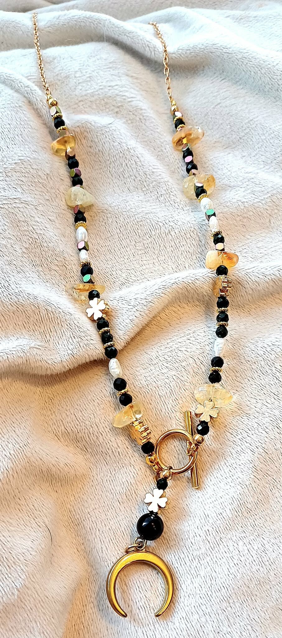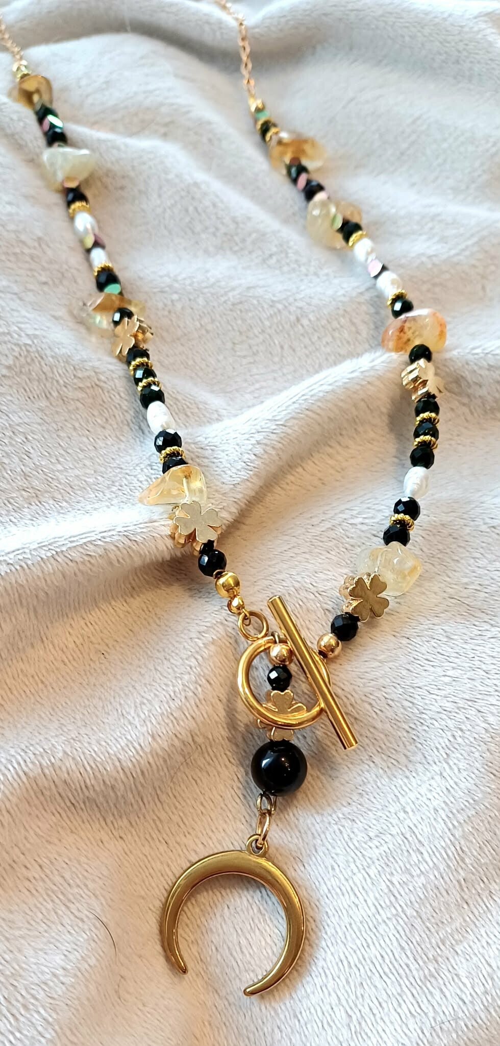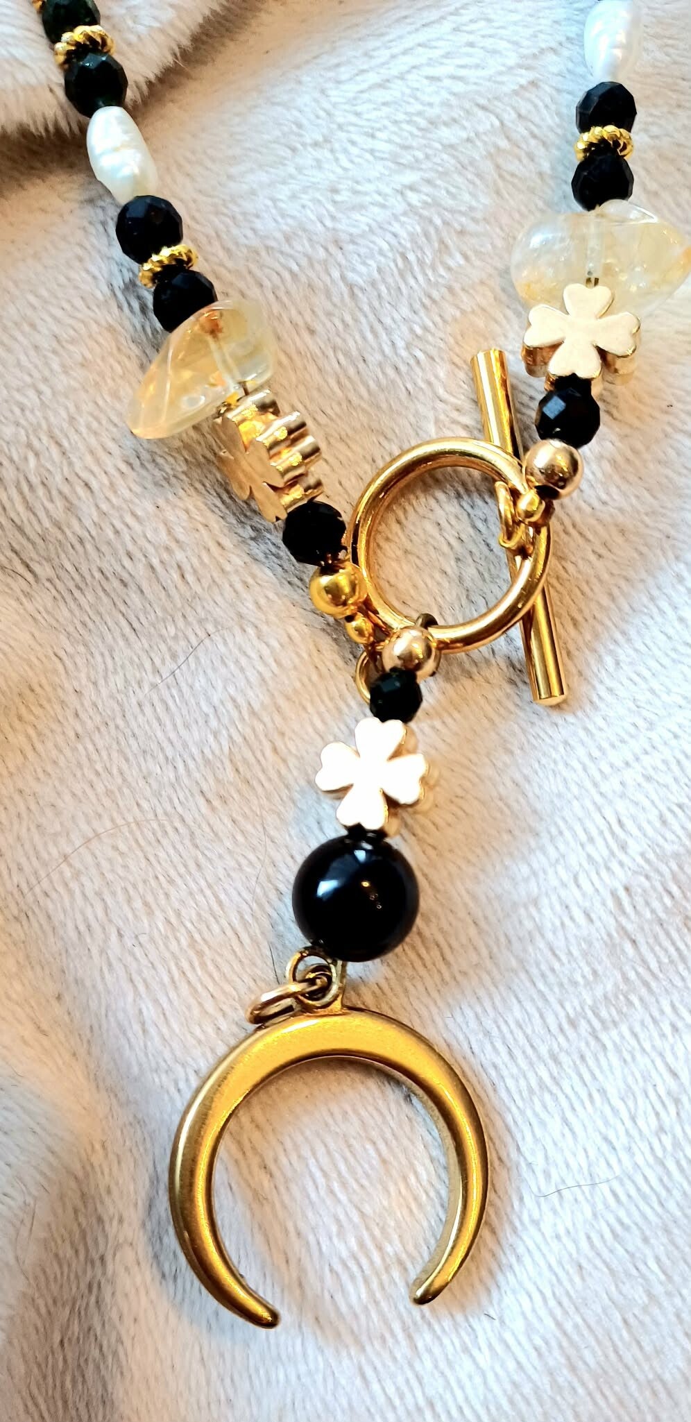 Ta cudowna Lunula - prastary symbol kobiecości- jest dla kobiety - wojewniczki - która ma odwagę pielęgnować w sobie kobiecość i chce być z tym szczęśliwa! Ten talizman może Tobie w tym pomóc swoją piękną energią naturalnych kamieni !